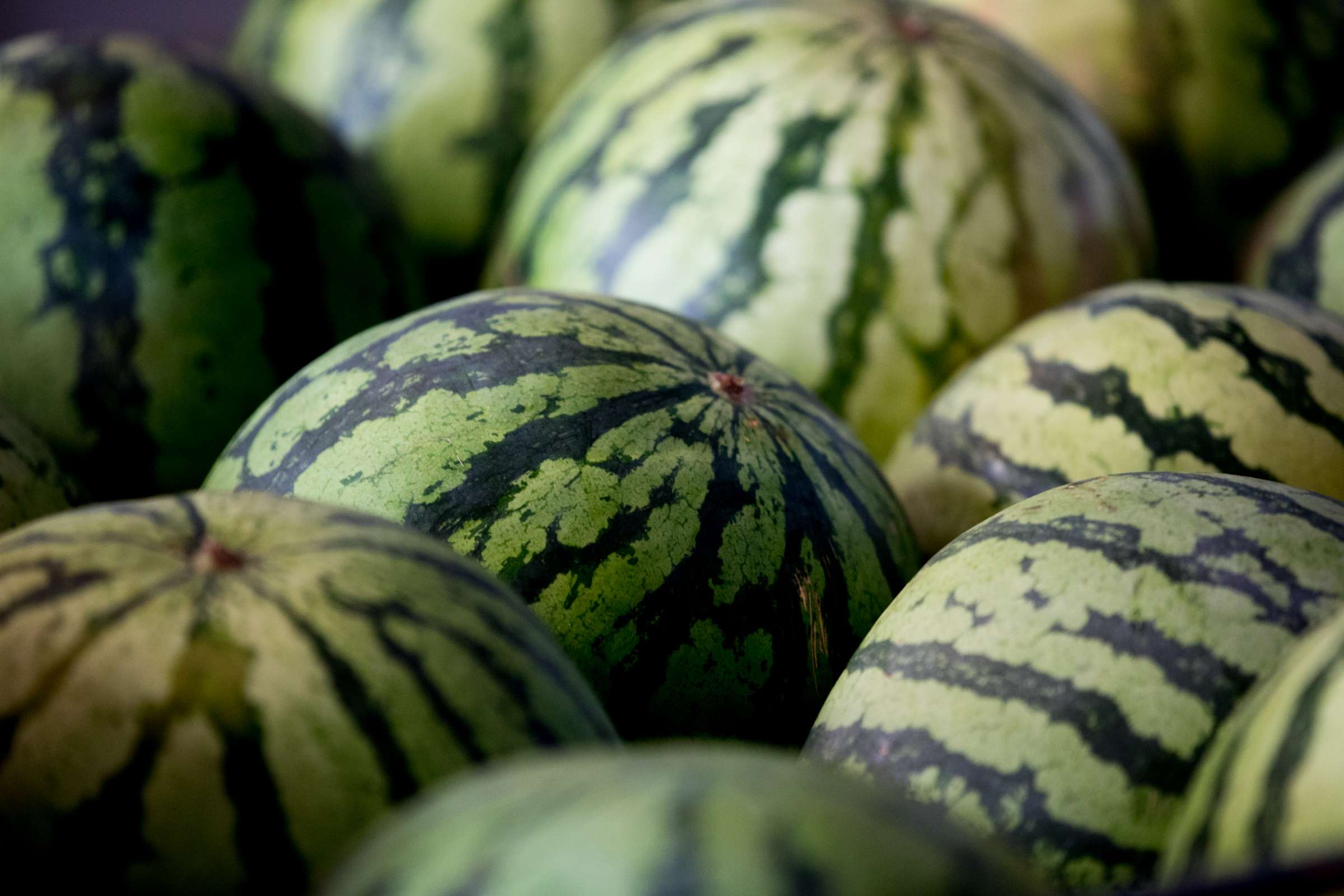 奥右から時計回りに、レモン、バニラ、ストロベリー、スイカ(夏季限定メニュー)、カカオ、バジル