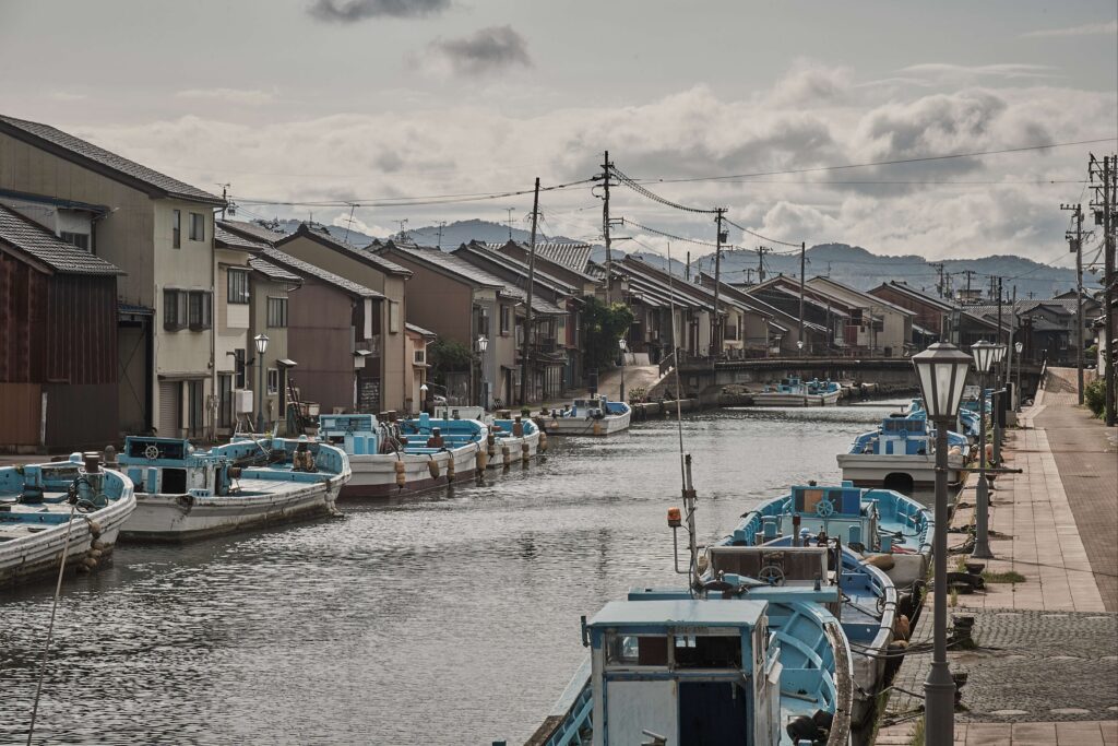 富山県射水市の内川。日本のベニスと称される美しい景観を残す運河ぞいの街並み